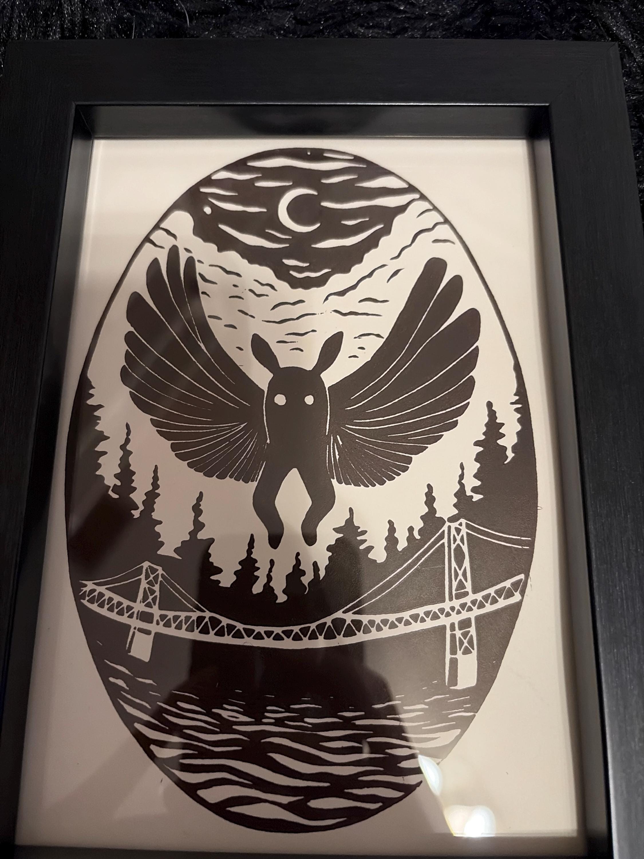 Really cool Linocut mothman :)