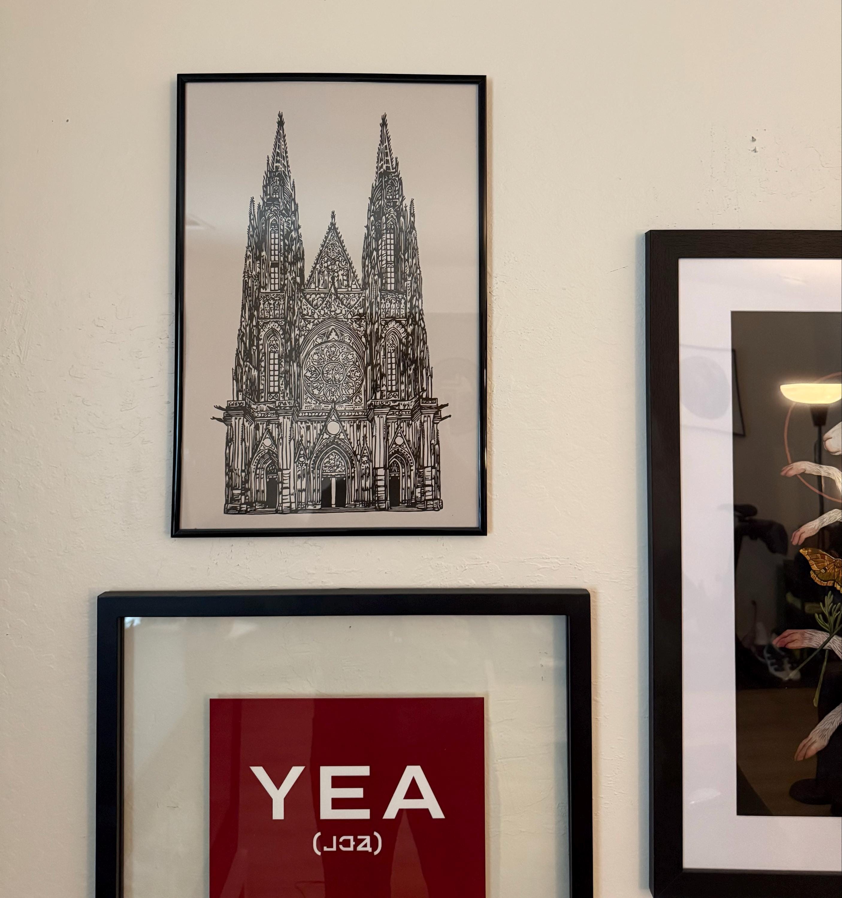 This is a 12x18" linocut print based on the St. Vitus Cathedral in Prague! It is printed with Cranfield Caligo Safewash inks on Stonehenge paper in the color Pearl Grey.