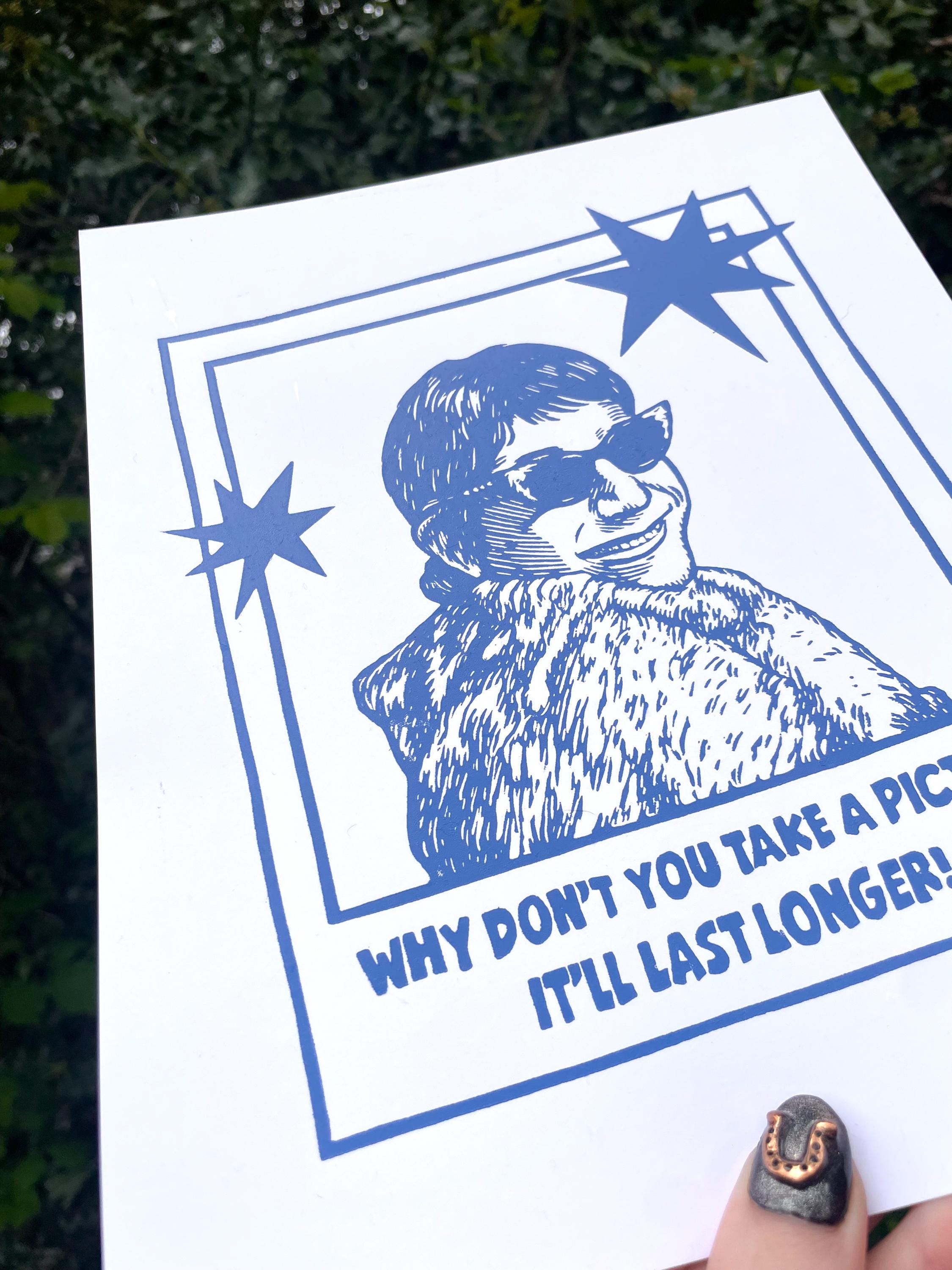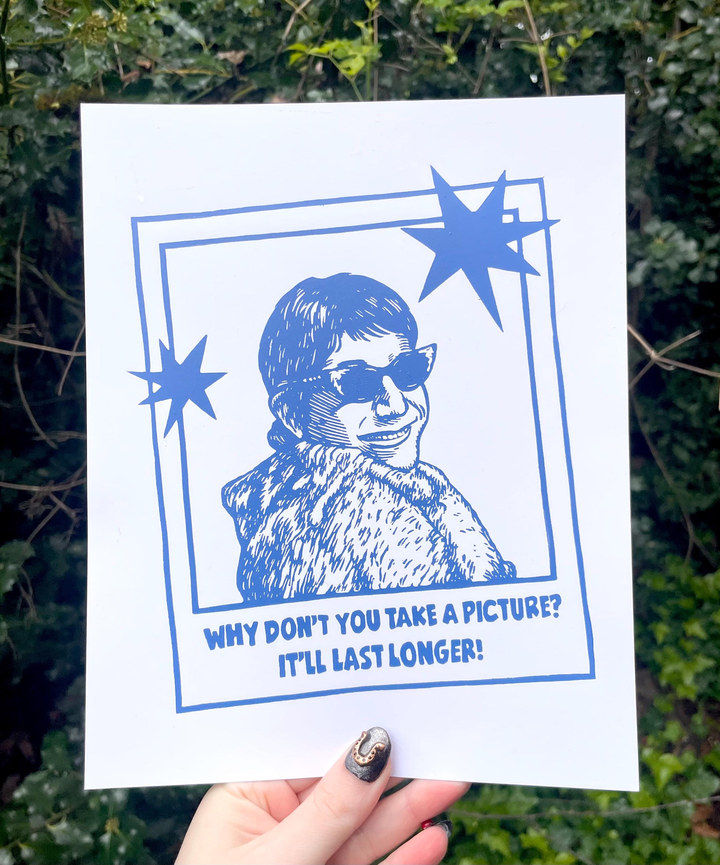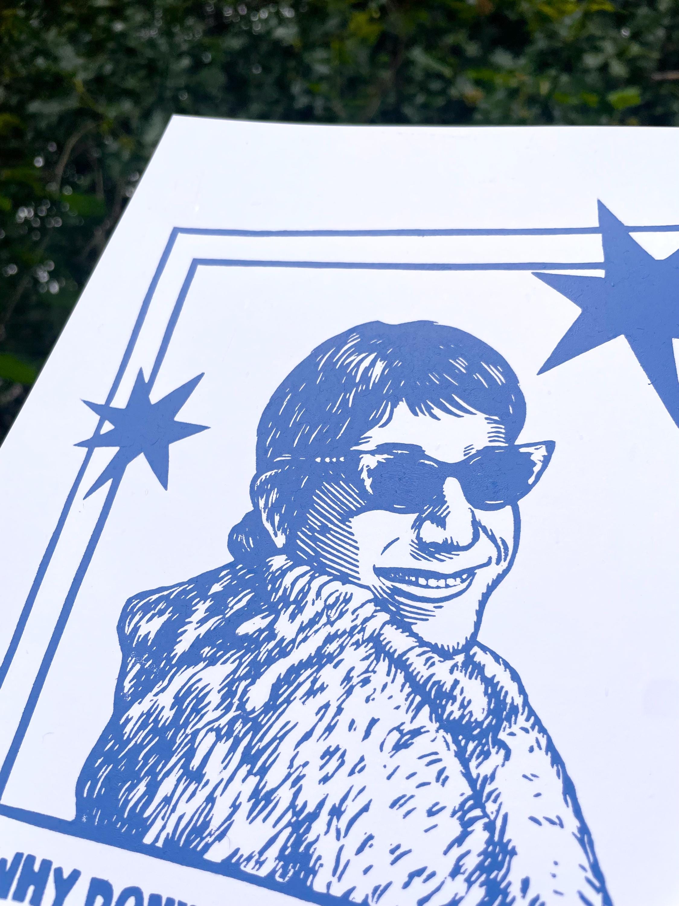 This is an 8x10" linocut print inspired by Peewee in drag!