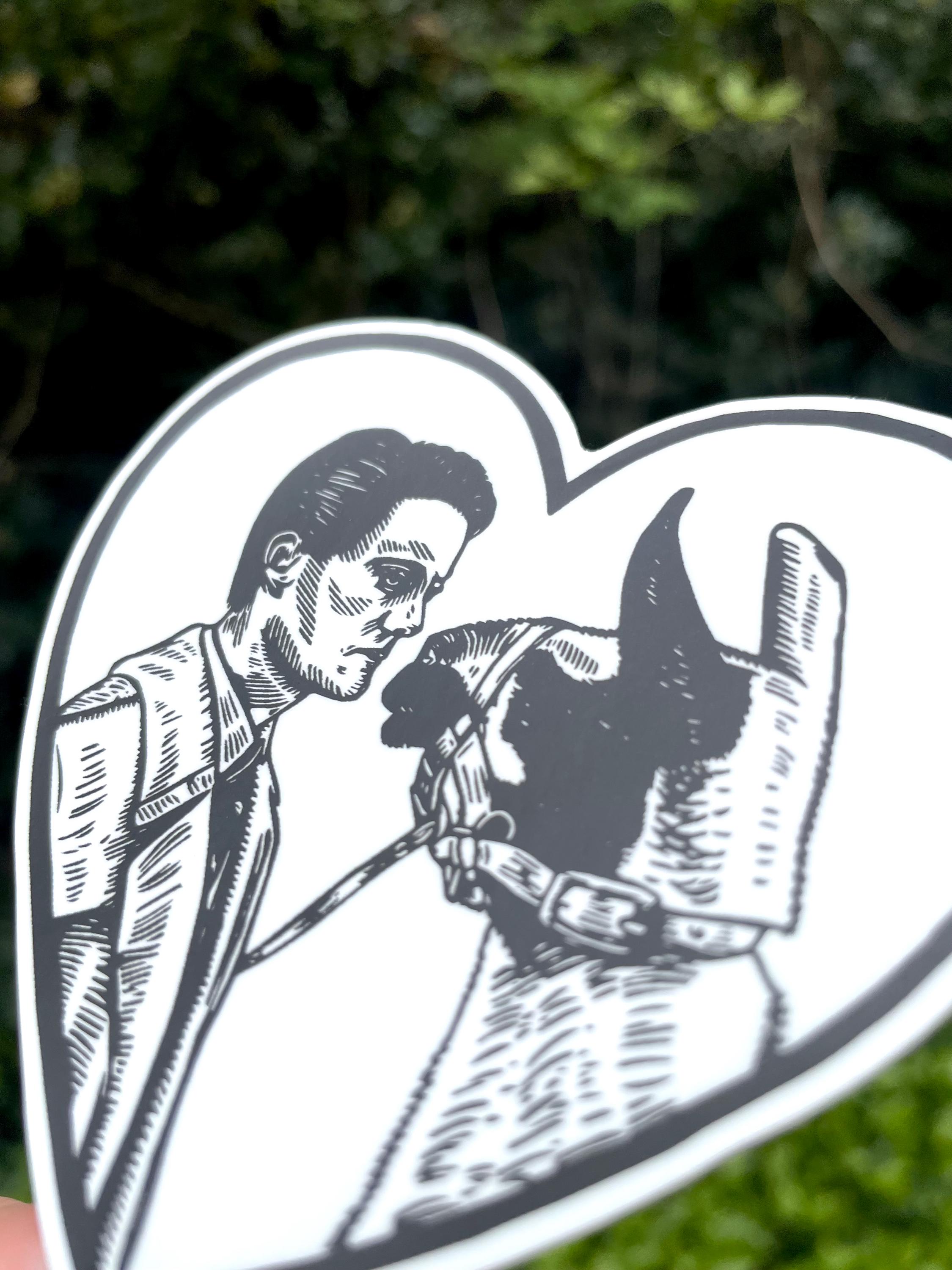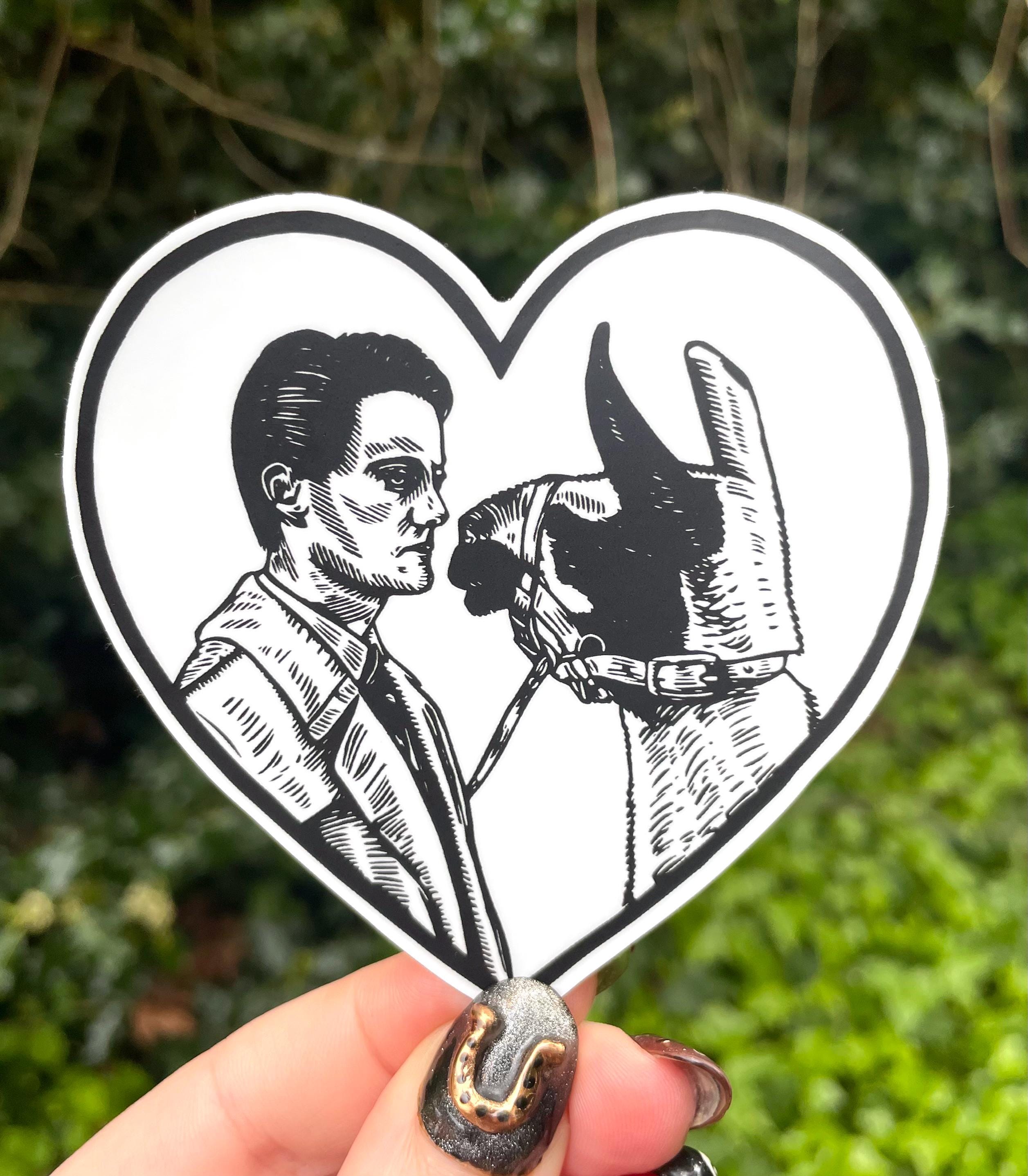 This is matte, 3.5x3.5" sticker based on my Dale Cooper and llama linocut print!
