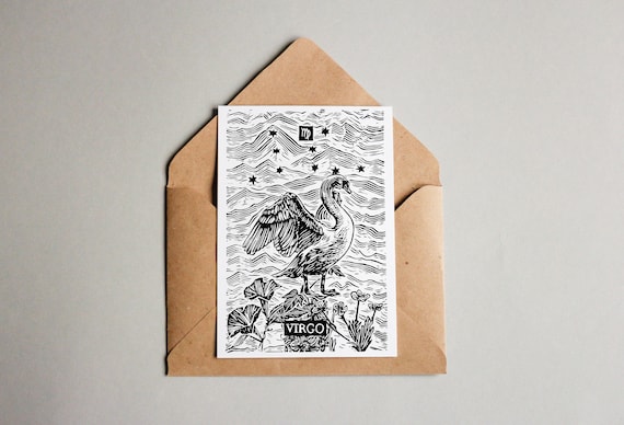 Printable VIRGO BIRTHDAY CARD, Printable Card, Instant Download, Virgo Print, Illustration - 6.5 x 4.5 - Blank Inside